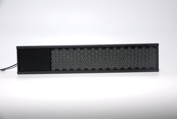 每張桌子可容納7名學生,并配有兩個屏幕。定向音箱位于學生面前的桌子邊緣。在講座期間,每個小組的任何成員都可以為小組中的其他人播放視頻。定向揚聲器混合來自講師的音頻和來自共享視頻的聲音,并允許每組學生不受干擾地播放獨特的音頻內容。